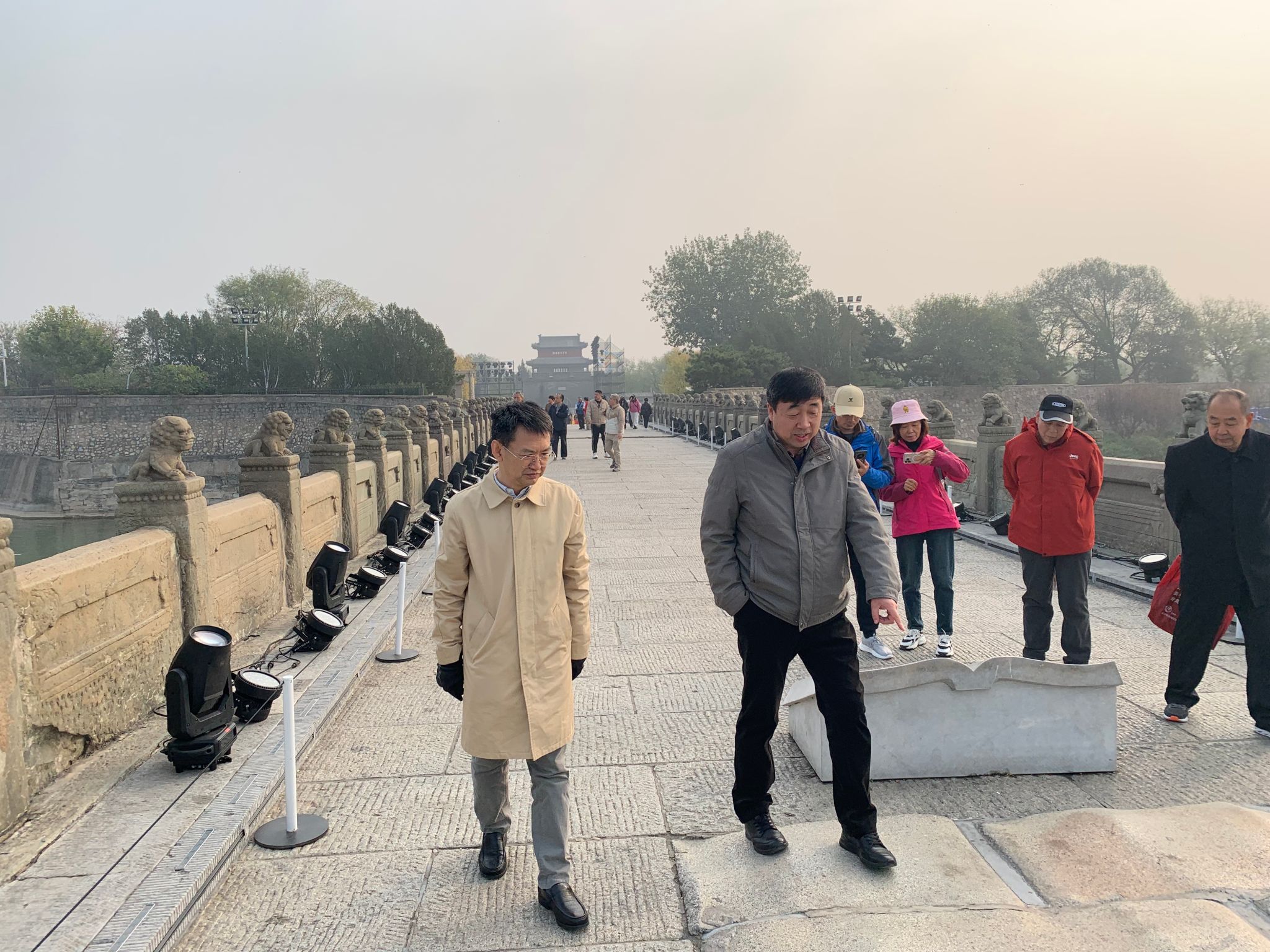 活动首站抵达卢沟桥。秋阳映照下,这座见证“七七事变”的历史古桥静卧永定河上,石狮斑驳诉说着烽火岁月。老师们行走在凹凸不平的桥面上,抚摸着形态各异的石狮子,历史的厚重感扑面而来。大家驻足凝望,仿佛听到了当年那场捍卫民族尊严的枪声,深刻感受到“卢沟桥事变”作为全民族抗战起点的重大历史意义,对先烈们英勇不屈、保家卫国的精神肃然起敬。