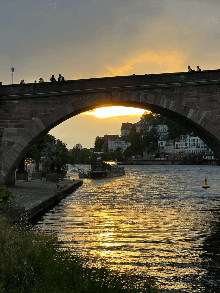 学者们来自世界各地的实验室,如星火闪烁,深入其中便觉奥妙无穷。当天日程于晚上六点宣告结束,随后便是品尝Currywurst的轻松时光。我珍惜这紧锣密鼓中难得的闲暇,在细雨中漫步离开大学广场。夕阳下的内卡河浮光跃金,宽阔的水面被岸边飞蓬细软的白色花瓣兜住,傍晚的冷风一视同仁地吹过货船、石桥与旁观的旅人。如此动人的风景,引发无数诗意的联想,而现实本身比心灵的影像更加意蕴悠长。